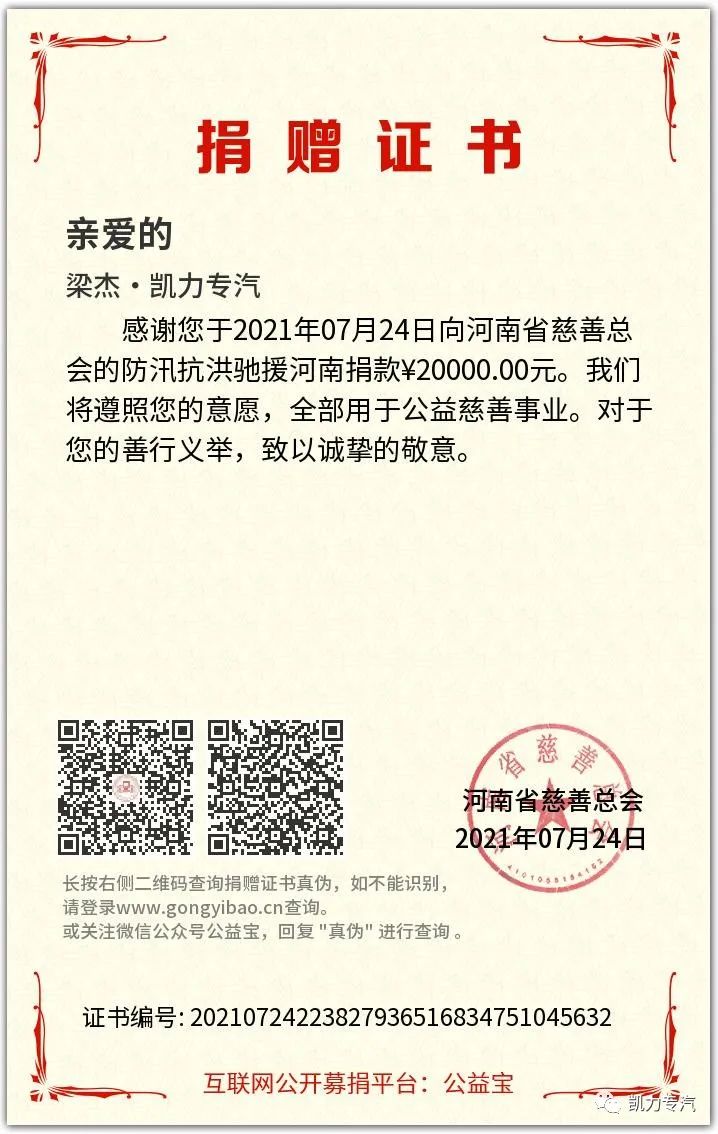 【凯力公益】风“豫”相“随” 共筑家园 ——凯力专汽捐款捐物驰援河南新乡