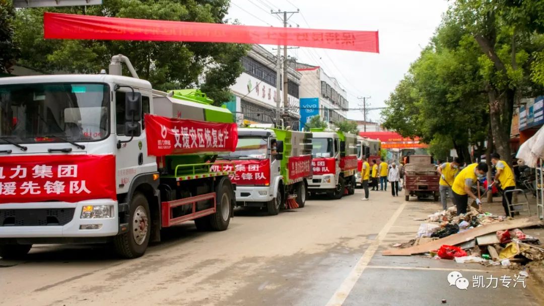 凯力高管团队第一时间与当地政府取得联系,积极参与灾后重建工作,部署调集深度保洁车、洗扫车、清洗吸污车、洒水车、多功能抑尘车等多种应急专用车辆,申请出战灾区,助力灾后重建工作。