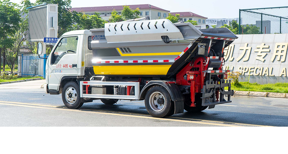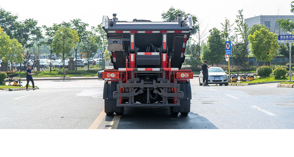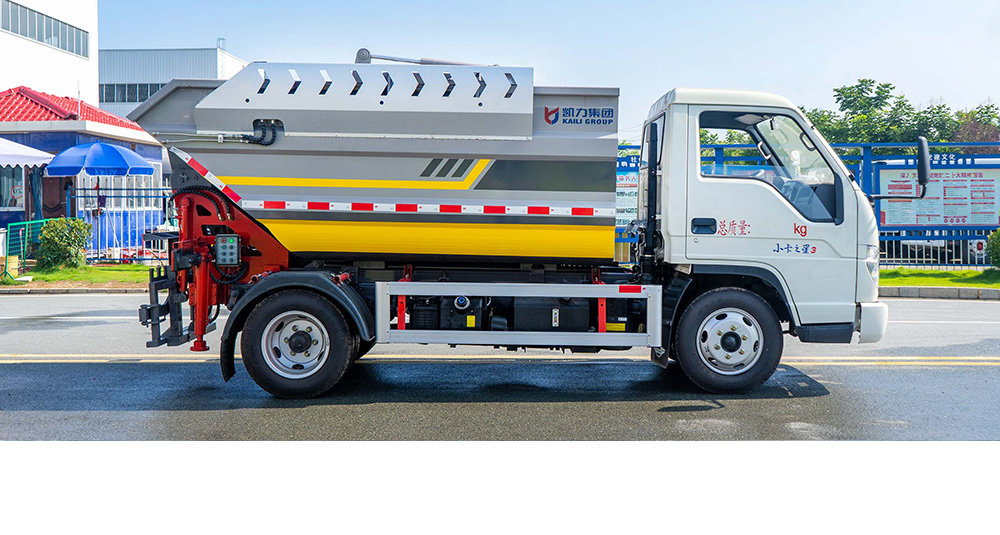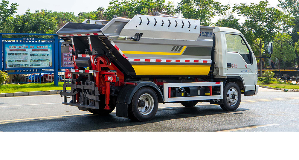 凯力风后装式自装卸垃圾车是凯力汽车集团针对城区垃圾运输“跑冒滴漏”等问题,专业研发生产的一款新型的垃圾收运车型,其核心优势是采用开口朝上的船形箱体设计,可做到100%垃圾无泄漏,并且具有刮板压缩和高位自卸功能,装载量大,卸料干净。