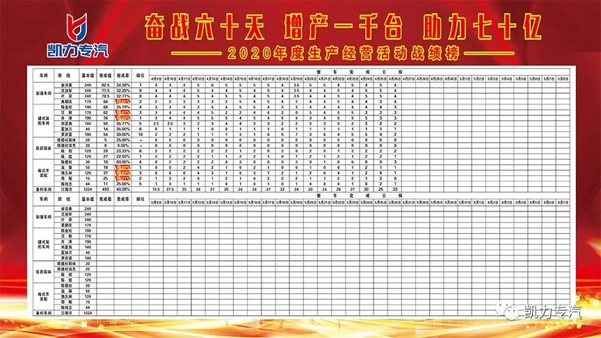 为全面配合 “奋战六十天、增产一千台、助力七十亿” 的生产经营活动,保证增产提能的活动效果,提高公司订单销量,加大公司市场营销力度,有效拉动公司产、销同步增长,4月17日湖北凯力专汽同步开展了以 “你增产能,我提销量,冲刺半年目标3000台” 为主题的营销服务竞赛活动。