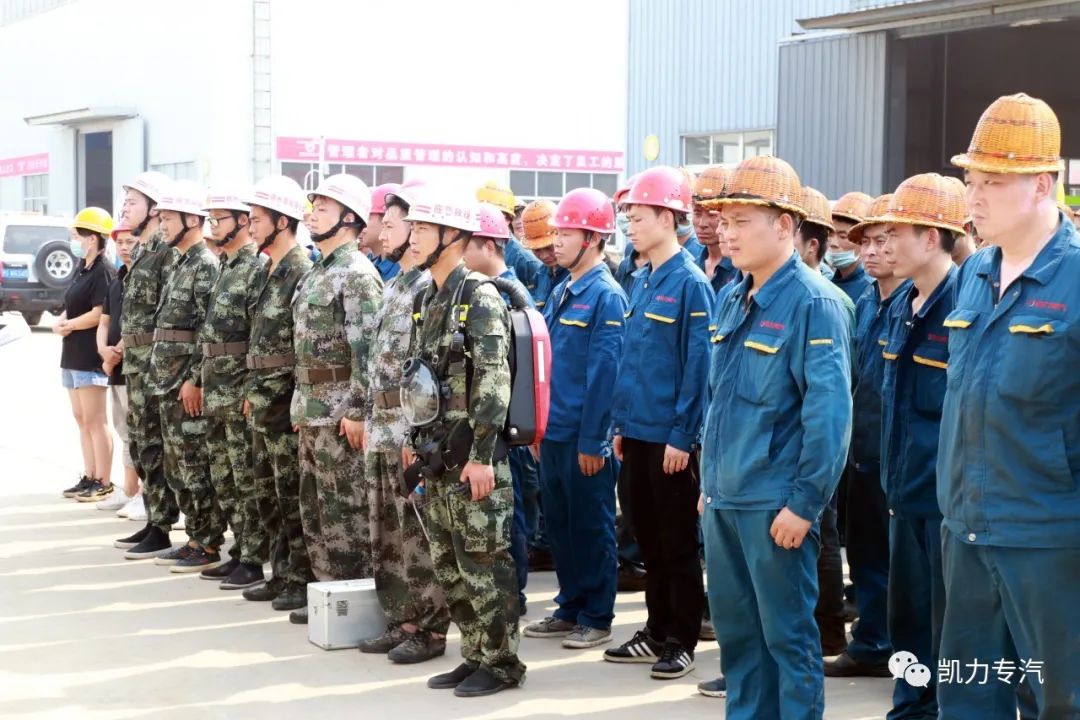 近年来触电引发火灾伤亡事故频繁发生,为推进企业的安全发展和“安全生产月”各项活动的深入开展,强化安全生产意识,落实安全生产责任,8月5日上午9:30,由我司联合随州市宏林救援队开展的触电和火灾应急救援演练在湖北凯力专用汽车有限公司5号生产车间紧张进行,公司高管及各部门员工300余人到现场观摩。本次演练由公司副总经理张建任活动总指挥。