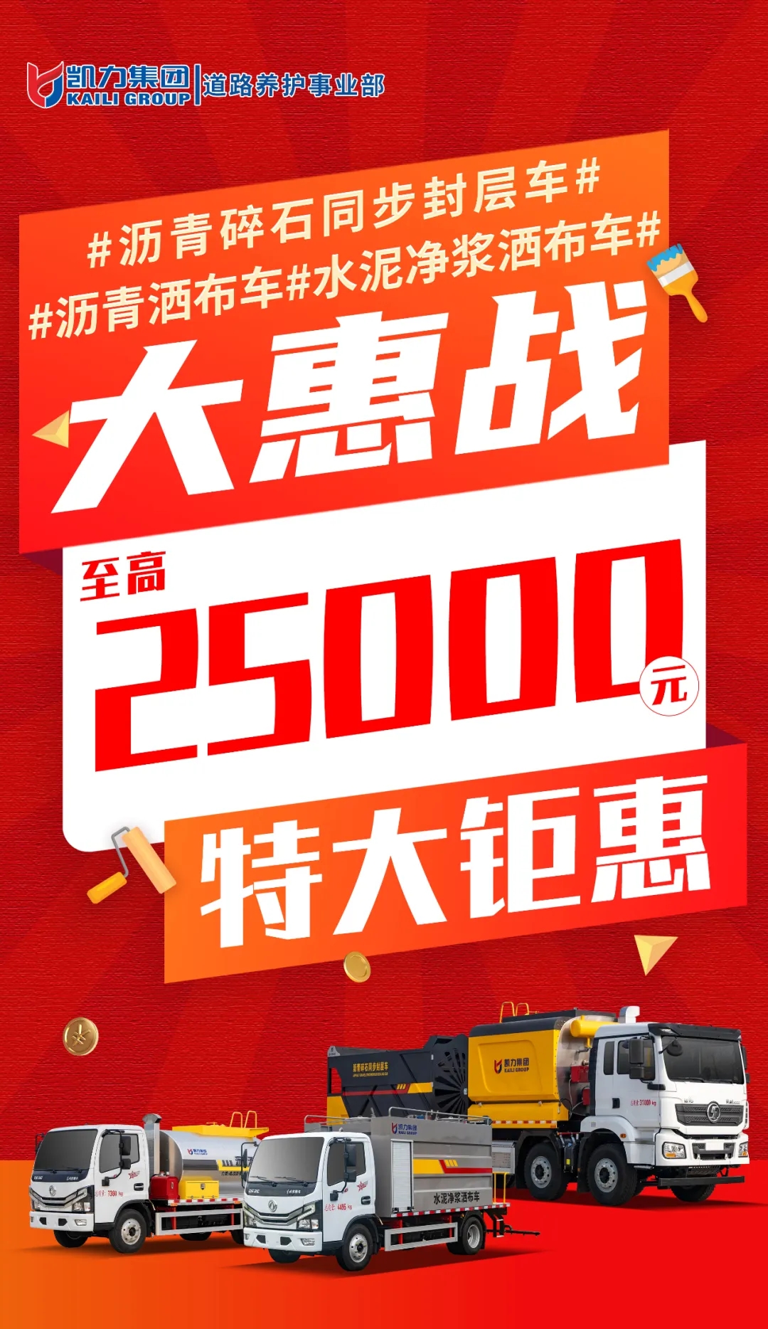【福利大放送】道路养护三款车型至高25000元特大优惠!