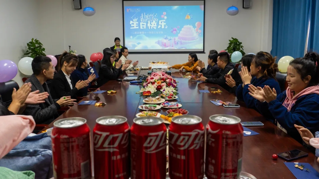十一月启,新冬可期,凯力集团十一月员工生日会也在秋冬交替之际如约而至。空气中已经可以感到丝丝寒意了,但是走进精心布置的生日会现场,却立刻被温馨的氛围紧紧环绕,映入眼帘的是气球、鲜花、大大的生日蛋糕、各式点心零食、摆放整齐的贺卡和生日礼物。