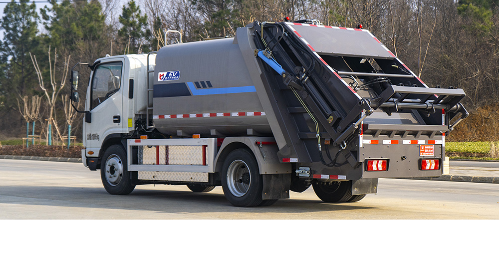 弧形箱体采用四轴卷板机滚弧一次成型,减少焊接面,增大容积率;优化滑板角度及油缸受力点,压缩比超市场竞品20%。