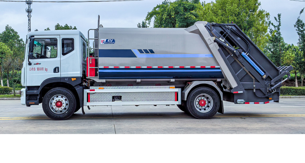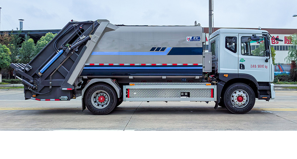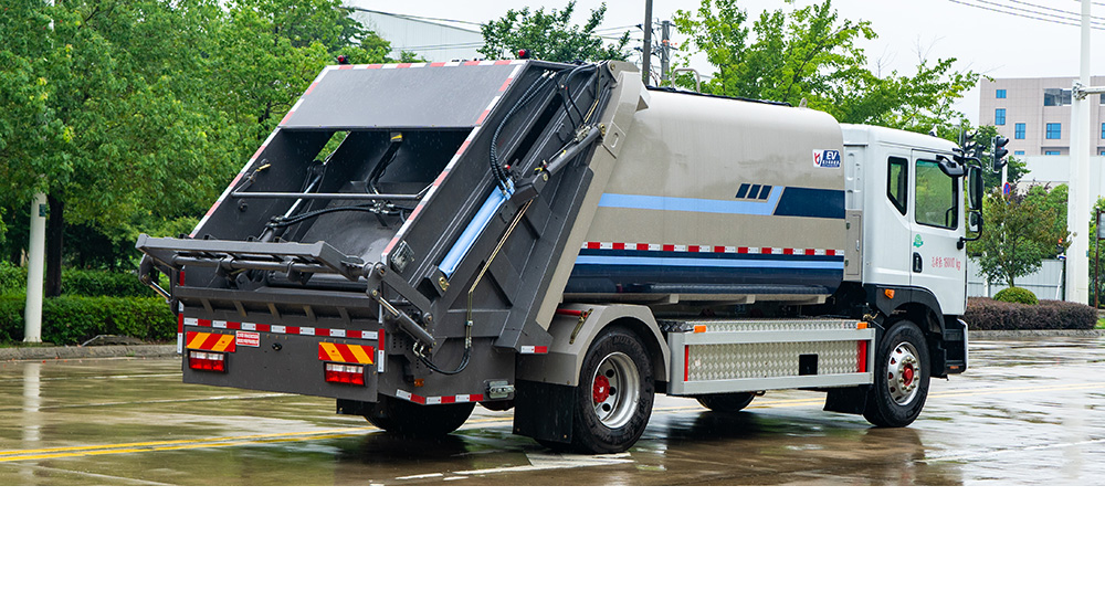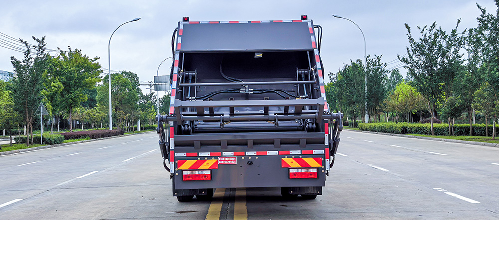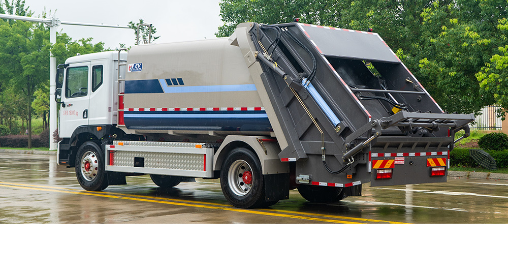 弧形箱体采用四轴卷板机滚弧一次成型,减少焊接面,增大容积率;优化滑板角度及油缸受力点,压缩比超市场竞品20%。
