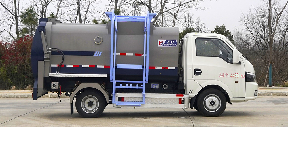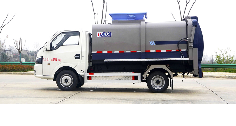 垃圾箱底部设置大量过滤孔,实现箱内餐厨垃圾固液的初步分离,装载能力强并配备有大容量污水箱;配套液压驱动高压清洗系统,可对整车及工作装置进行清洗。