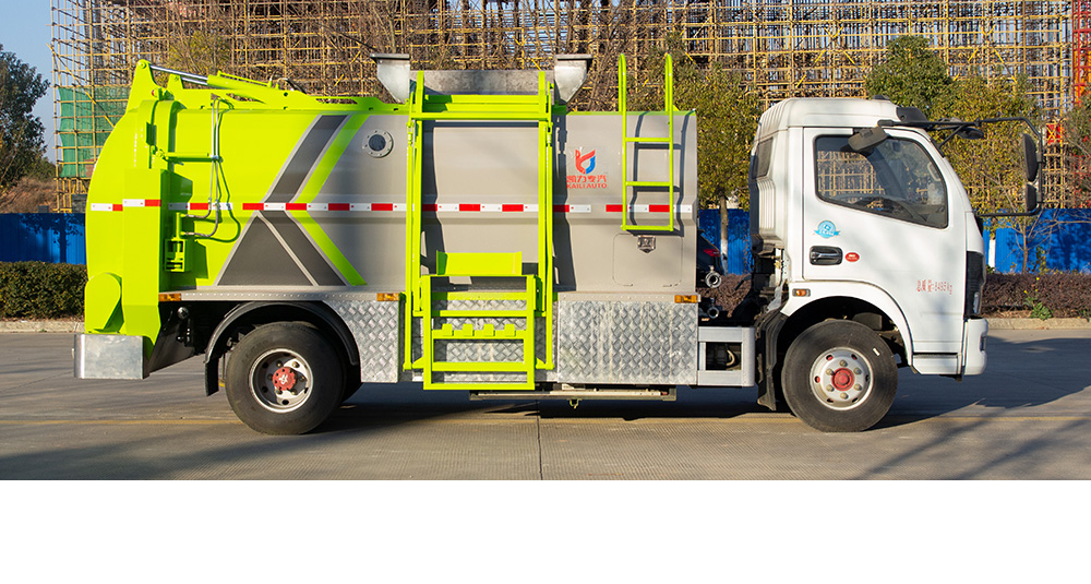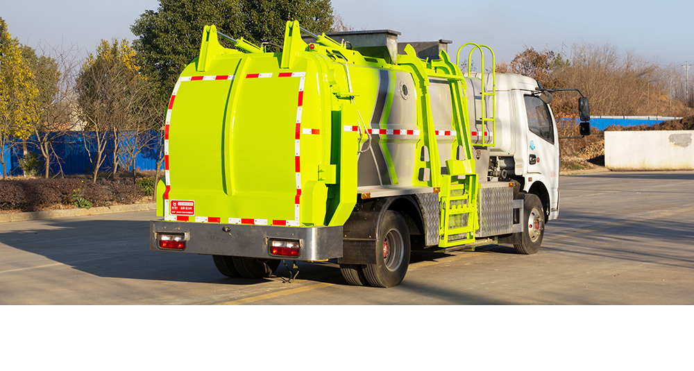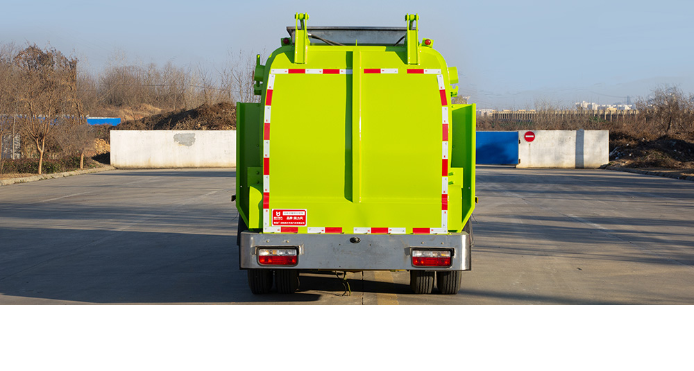 垃圾箱底部设置大量过滤孔,实现箱内餐厨垃圾固液的初步分离,装载能力强并配备有大容量污水箱;配套液压驱动高压清洗系统,可对整车及工作装置进行清洗。