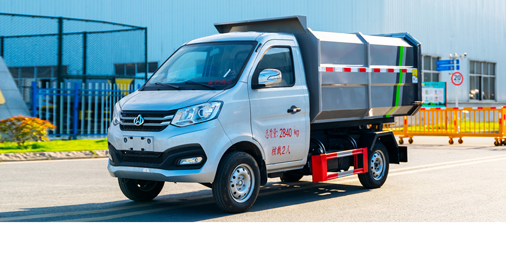 一车多配,能与多个垃圾桶联合作业,循环运输,连杆上料机构具有结构简单、性能可靠、上料循环时间短、运行效率高等优点;垃圾箱上侧设有挡板、翻桶架,投料口独特设计,可防止上料时垃圾漏洒。