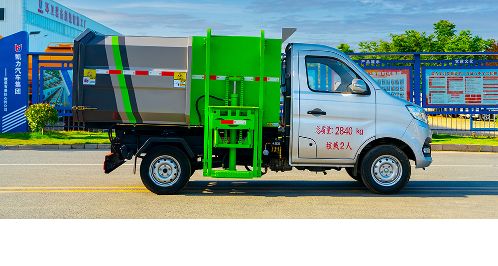 凯力风侧装式自装卸垃圾车外观简洁、性能优异、作业效率高,可配套120L/240L垃圾桶作业,主要适用于城镇居民区、社区、机关院校和老城区狭窄街道的桶装垃圾收运,尤其适合于狭窄街道老城区生活垃圾的收集和转运。