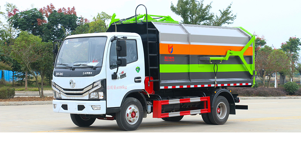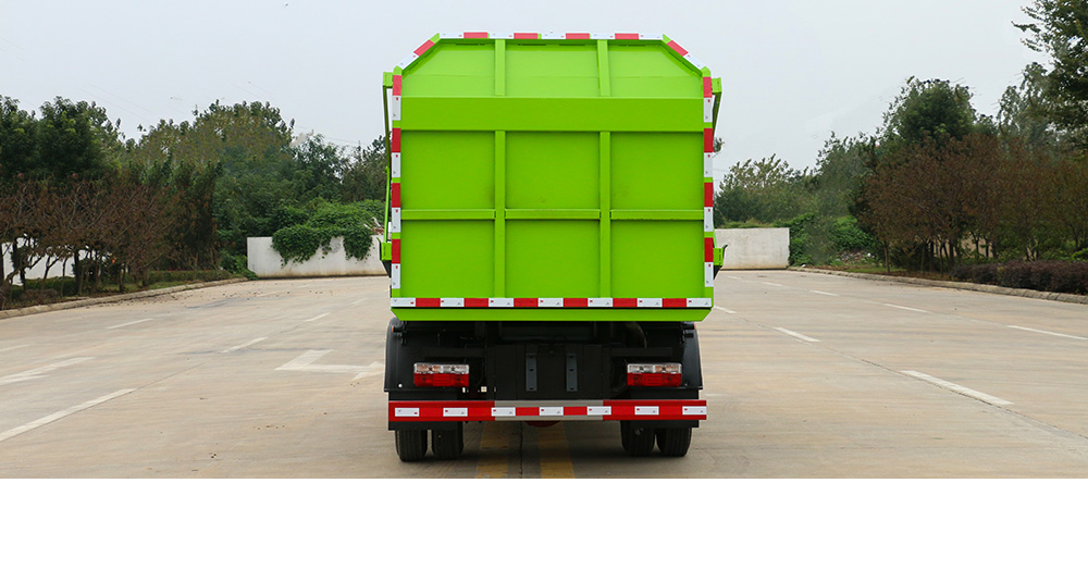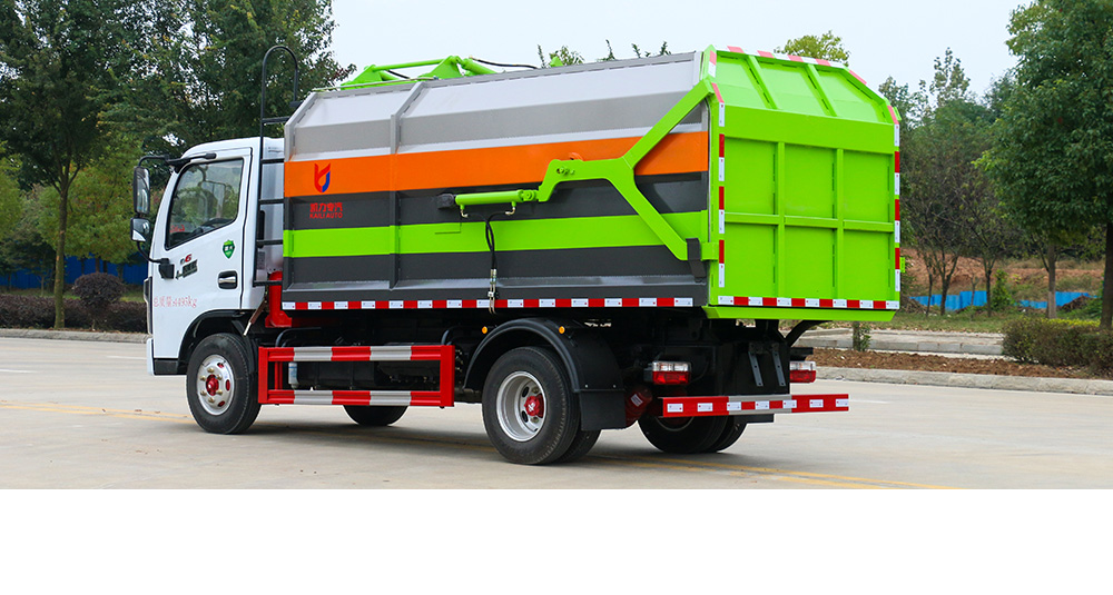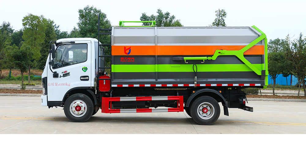 一车多配,能与多个垃圾桶联合作业,循环运输,连杆上料机构具有结构简单、性能可靠、上料循环时间短、运行效率高等优点;垃圾箱上侧设有挡板、翻桶架,投料口独特设计,可防止上料时垃圾漏洒。