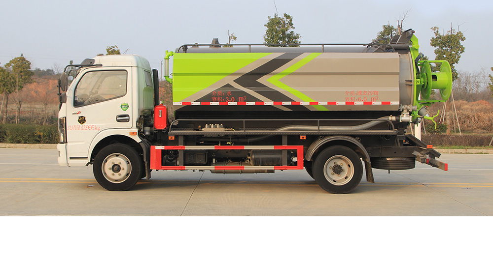 该车由汽车底盘、取力器、传动轴、真空吸污泵、水气分离器、多路换向阀、清水箱、视污管、真空压力表、管网系统等组成。用于抽吸污水、污泥浆和混有悬浮杂物泥渣、小砖块、碎石等。具有抽吸效率高、自吸自排及直灌等特点。