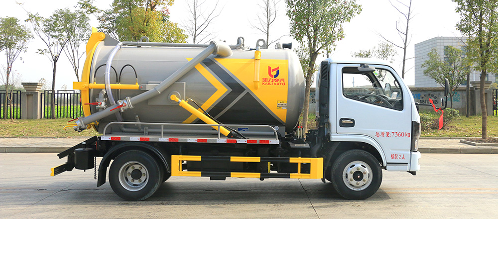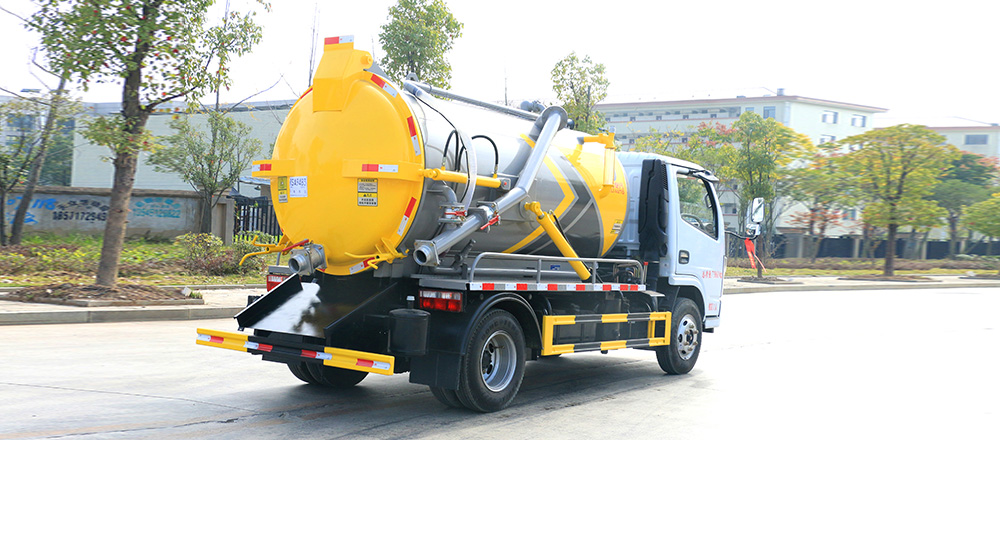 吸污车由汽车底盘、取力器、传动轴、真空吸污泵、压力罐体、液压部分、管网系统、真空压力表、视粪窗、洗手装置等组成,随车配置大功率真空吸污泵和优质液压系统,罐体封头一次压铸成型、罐体可后开、双顶自卸。