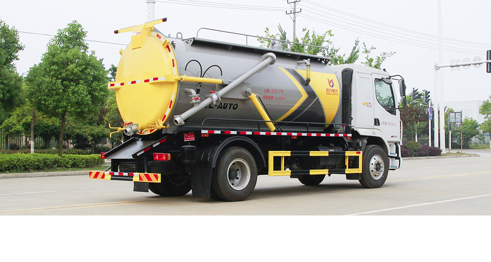 吸污车由汽车底盘、取力器、传动轴、真空吸污泵、压力罐体、液压部分、管网系统、真空压力表、视粪窗、洗手装置等组成,随车配置大功率真空吸污泵和优质液压系统,罐体封头一次压铸成型、罐体可后开、双顶自卸。