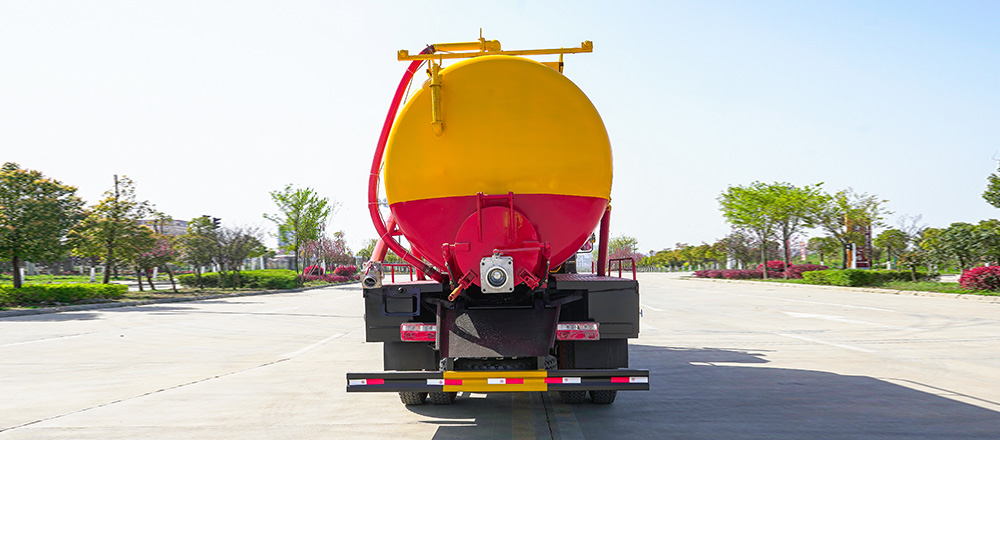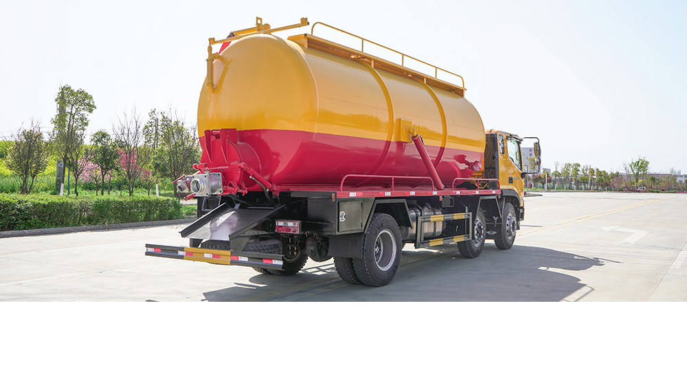 吸污车由汽车底盘、取力器、传动轴、真空吸污泵、压力罐体、液压部分、管网系统、真空压力表、视粪窗、洗手装置等组成,随车配置大功率真空吸污泵和优质液压系统,罐体封头一次压铸成型、罐体可后开、双顶自卸。