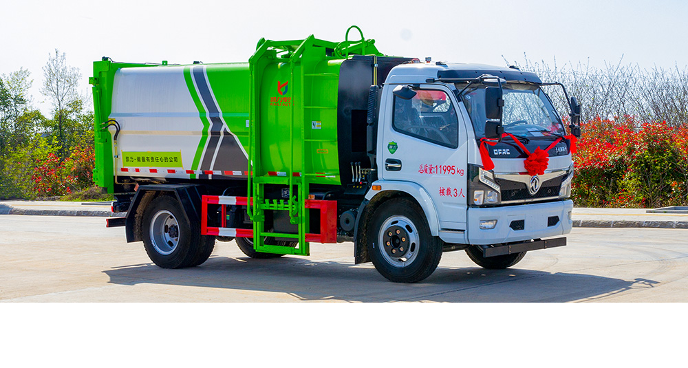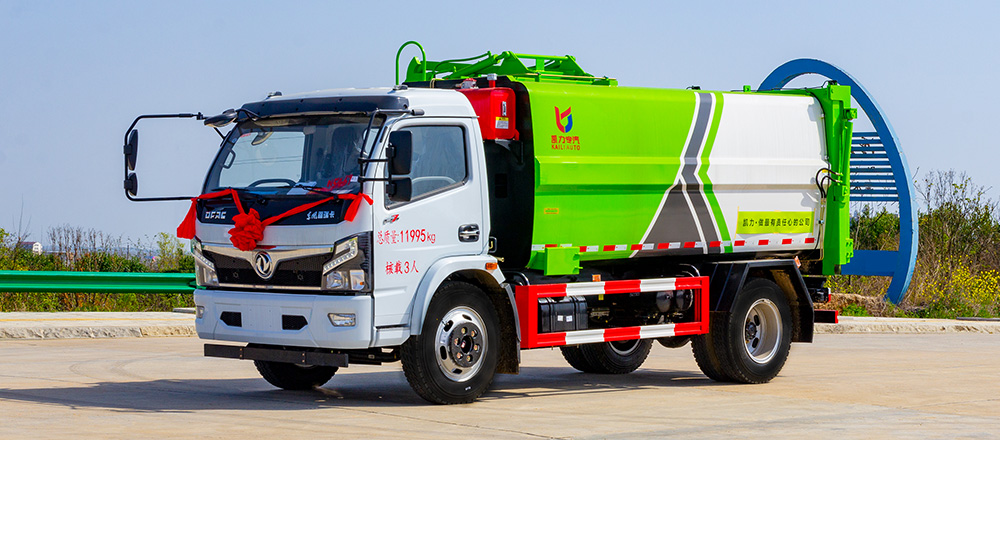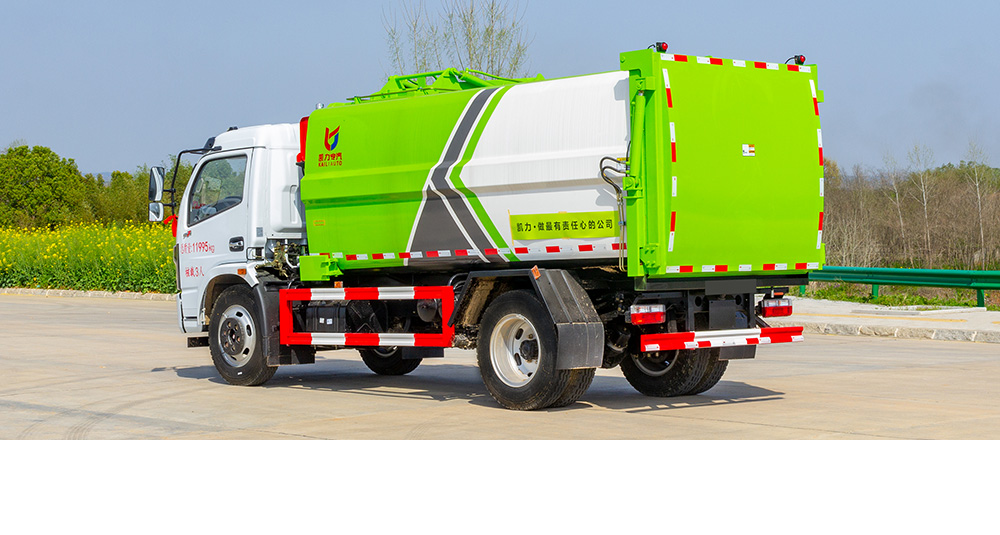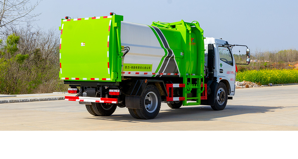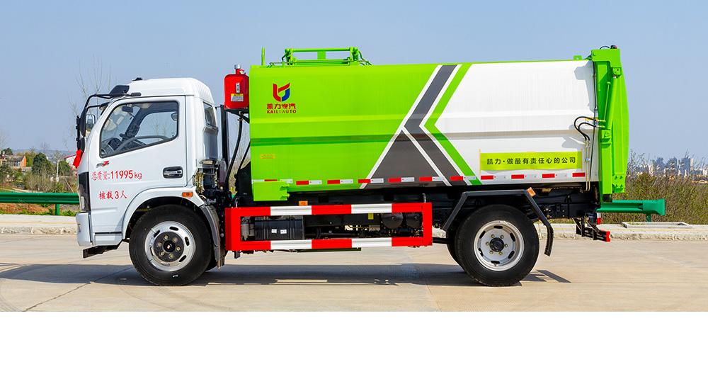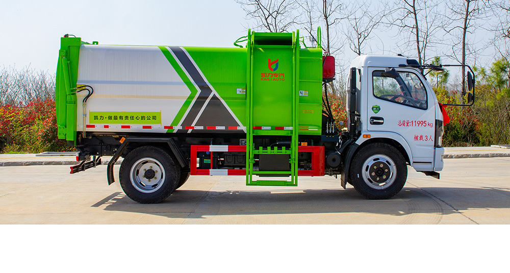 凯力风侧装压缩式垃圾车是通过拉杆提升垃圾桶自动倒入垃圾,并往车厢后方推动挤压垃圾,达到压缩垃圾的目的,压缩原理是采用机、电、液压联动控制系统、电脑控制及手动操作系统,通过填装器和推铲等装置实现垃圾倒入、压碎或压扁,并将垃圾挤入车厢压实和推卸。