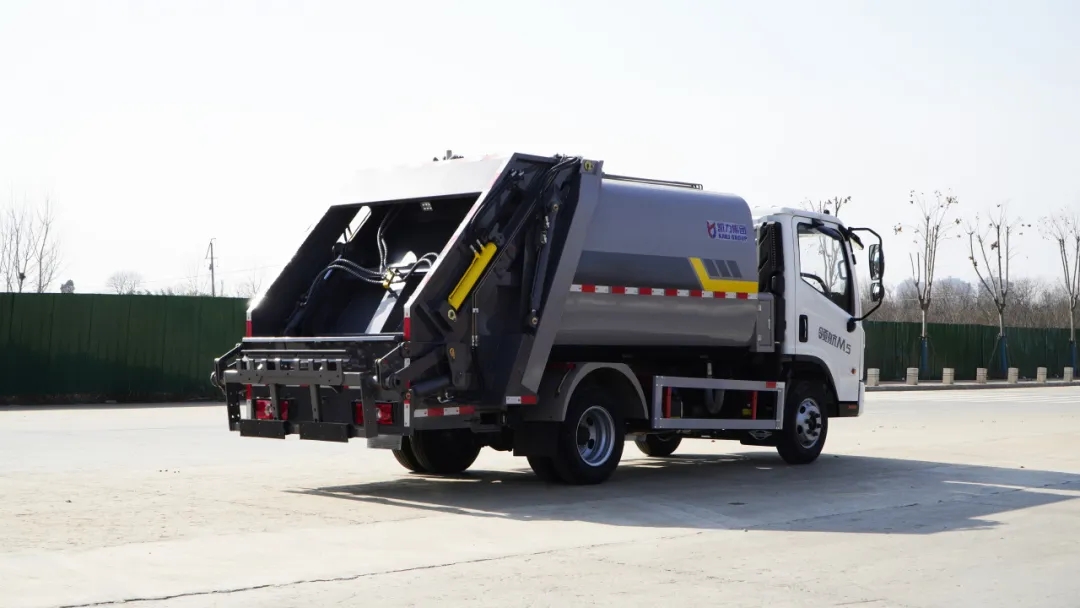 箱体有效容积5.8m³,标配双向压缩技术及四种操作模式,尾部可选翻转板/落地斗/可拆卸三角斗/摆臂机构四种进料机构,专为市政环卫、工业厂区高效作业设计。