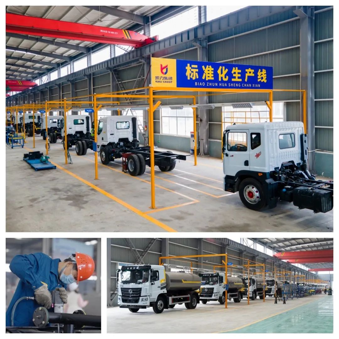 在企业生产技术方面,目前凯力专汽有两条自动化包罐生产线,一条压缩车、拉臂装备生产线,一条国内首条洒水车标准化生产线也在今年11月中旬建成投产,模块化设计,全程拼装无焊接,14道生产工序,18道检测工序,全程90分钟一台车下线交付。新的电泳、喷粉车间也陆续上线投入使用,将极大的提升企业产品品质和企业综合实力。