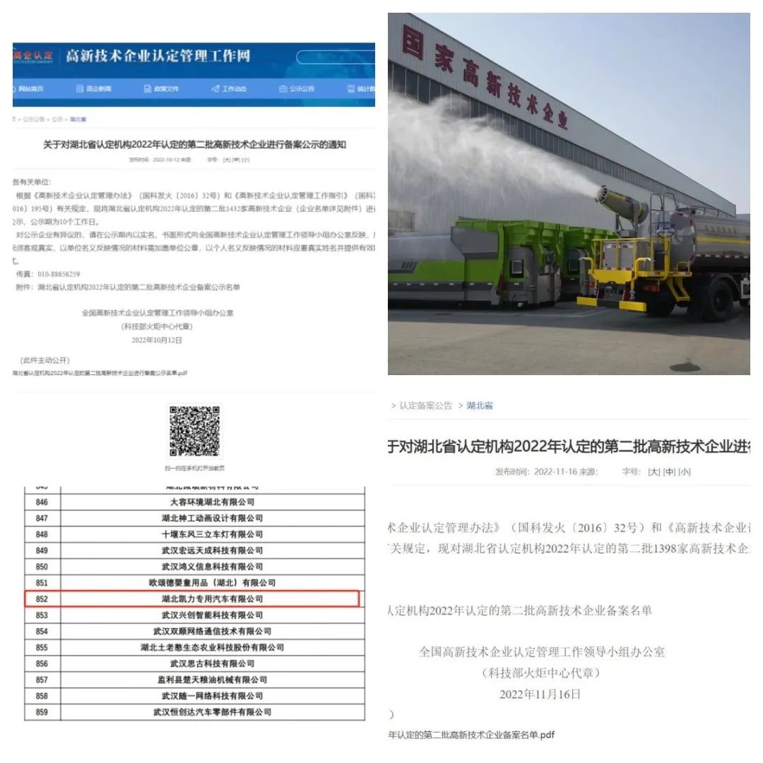 全国高新技术企业认定管理工作领导小组办公室发布公告,湖北凯力专用汽车有限公司喜获“国家高新技术企业”认定,是中国科技企业的最高荣誉之一。